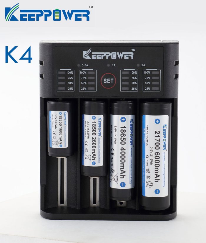 A töltő 0,5 A / 1 A / 2 A kimeneti árammal dolgozik Li‑ion akkuknál, Ni‑MH akkuknál pedig 0,5 A-rel, így kíméletesen, mégis hatékonyan tölti a különböző kapacitású cellákatA Keeppower K4 támogatja a legtöbb, hőkamerákban gyakran használt méretet: a 16340 / CR123, 14500, 18650, 21700, 26650 és további Li‑ion cellákat, valamint az AA/AAA Ni‑MH akkumulátorokat isEnnek köszönhetően egyetlen töltővel megoldható a hőkamera, a lámpák és más kiegészítők energiaellátása is.