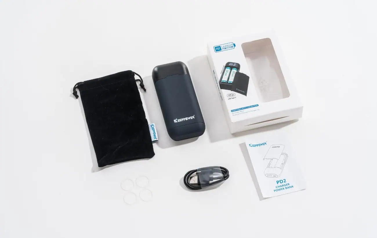 A Keeppower PD2 egy kompakt, kétfoglalatos intelligens Li-ion akkumulátortöltő, amely hordozható power bankként is használható. A készülék USB-C bemenettel, valamint USB-A és USB-C kimenettel rendelkezik, így nemcsak akkumulátorok töltésére, hanem mobil eszközök energiaellátására is praktikus megoldás.
